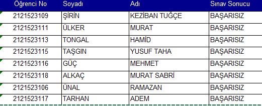 Muafiyet Sınavı Sonuçları (Ek Kontenjan)